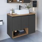 Gabinete de Banheiro Suspenso 80cm Cecília com 3 Portas e 1 Nicho com Cuba Mel/Grafite