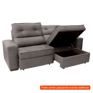 Sofá Retrátil e Reclinável Bipartido com Baú 2m 3 Lugares Maverik Suede Cinza com Molas Selmer