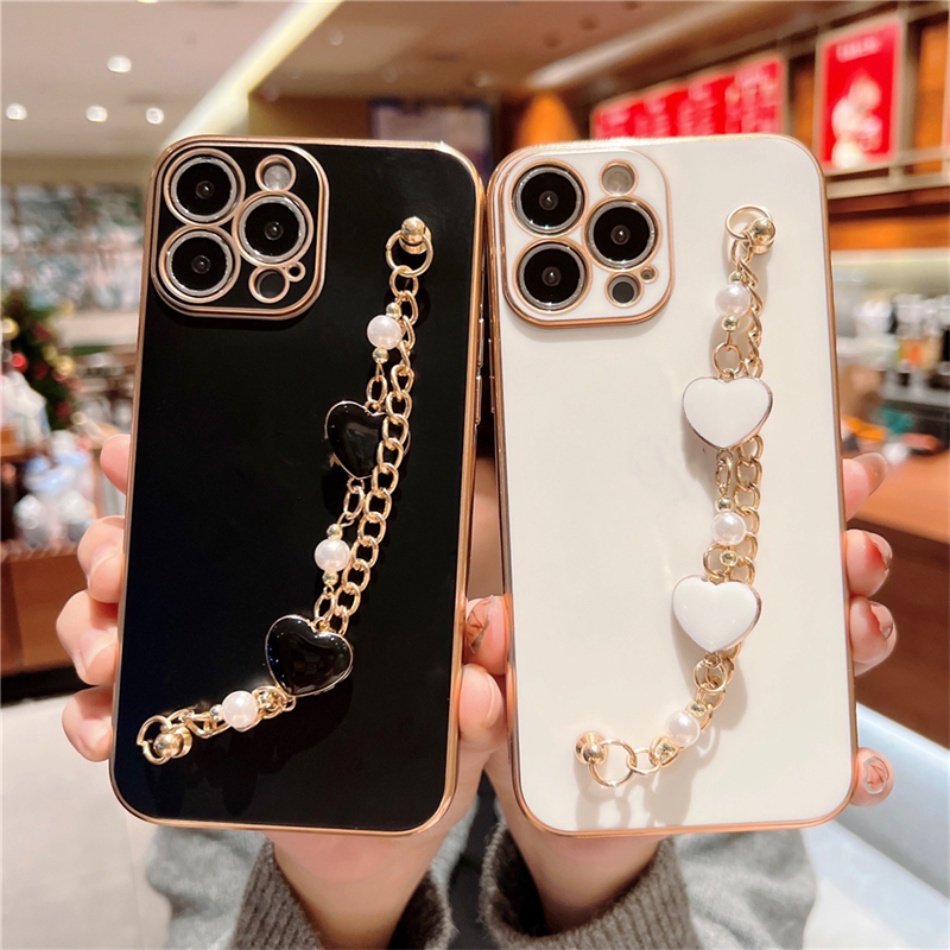 Capa De Revestimento Moto G50 G32 G52 G22 G82 G60S G60 G42 G23 G20 G30 G10 G73 G53 G23 G13 E20 Luxuoso Pérola Bracelete Amor Pulso Corrente Telefone Macia Silicone Traseira