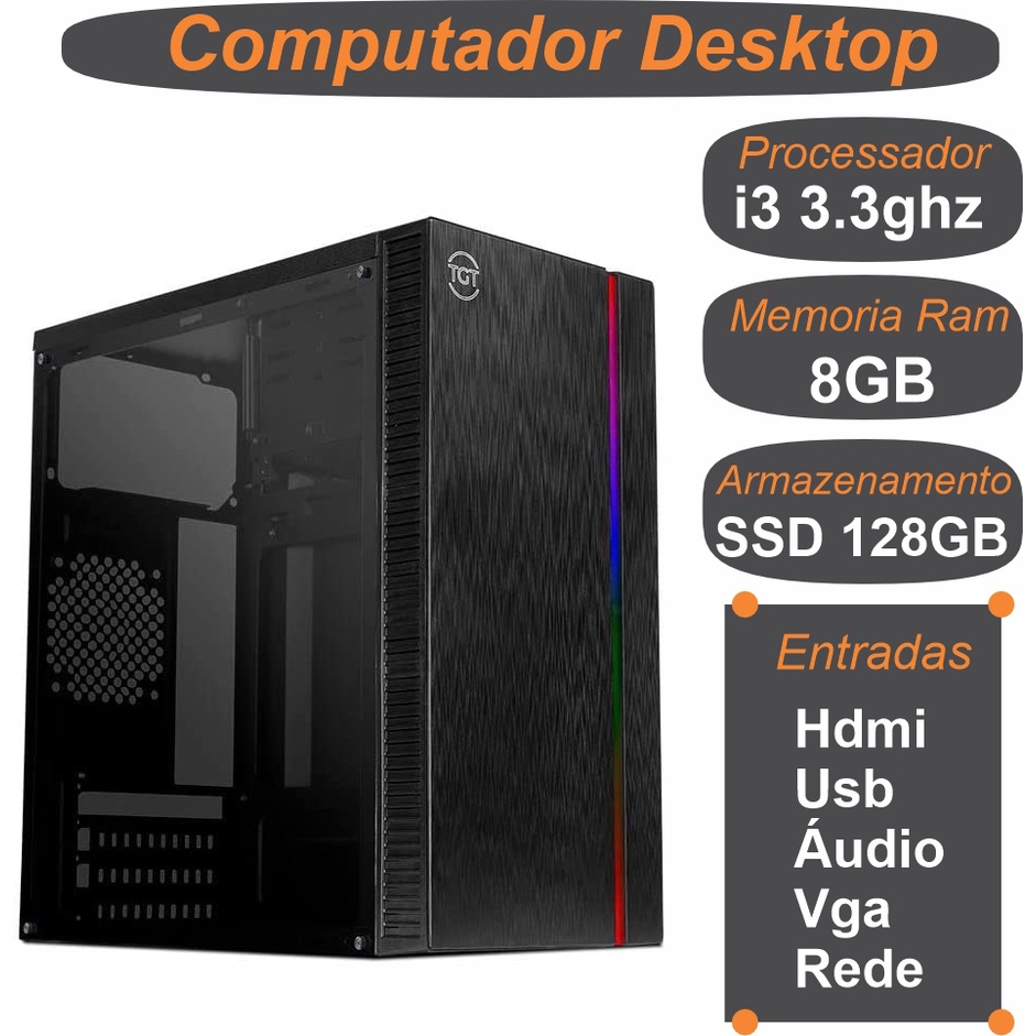 COMPUTADOR HOME, INTEL CORE I3-3240, 8GB DDR3, SSD 128GB