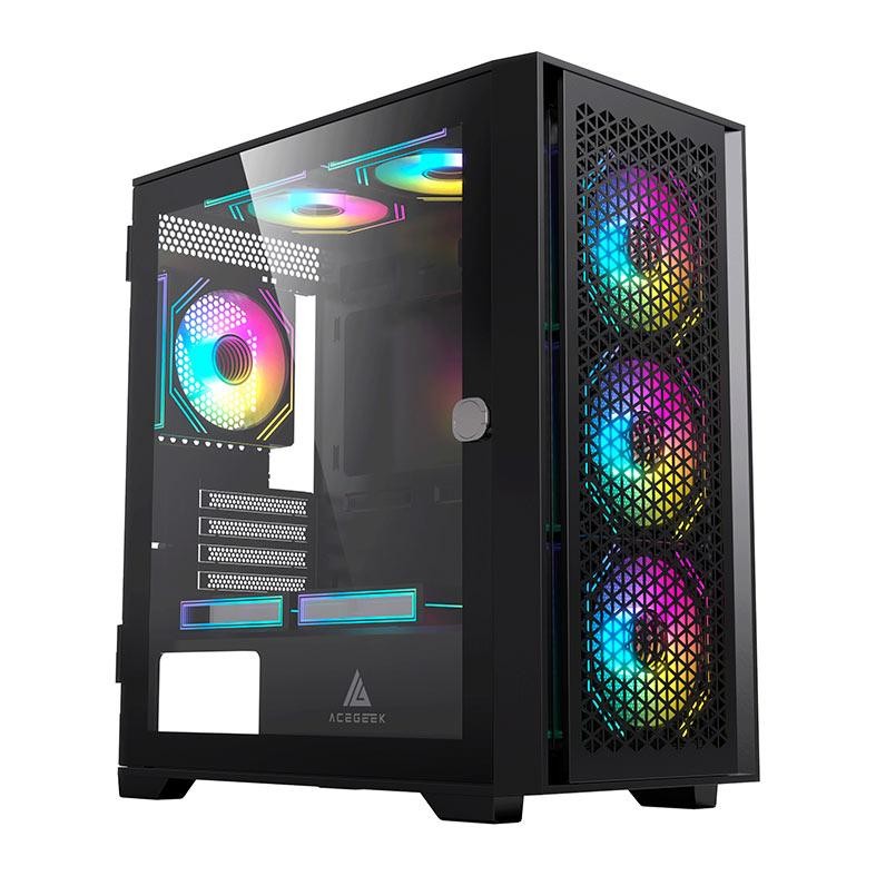Gabinete Gamer Acegeek Darkfate Mini Mesh, Mid-Tower, Lateral de Vidro, Preto, AG-DARKFATE-MINI-MESH-BK