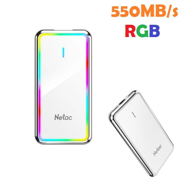 SSD Gamer RGB Externo Potrátil 1TB Netac USB 3.2 Tipo C até 550 MB/s - LED