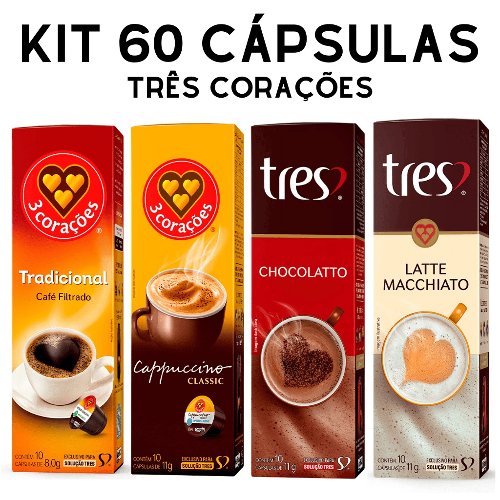 Kit Três Corações Café Filtrado Tradicional Latte Macchiato Cappuccino E Chocolato 60 Cápsulas