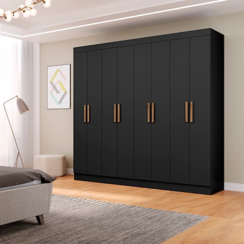 Guarda-Roupa Maxel New Royale com 8 Portas, 4 Gavetas e 6 Prateleiras - 218cm de largura - Preto