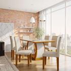 Conjunto de Mesa de Jantar com Vidro e 6 Cadeiras Olívia I Veludo Imbuia e Creme