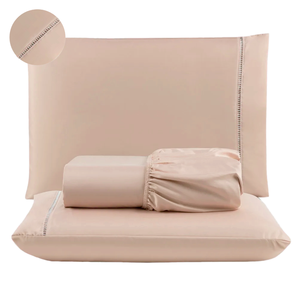 Jogo de Lençol 400 Fios Com Ponto Palito Toque Macio 2 e 3 Peças