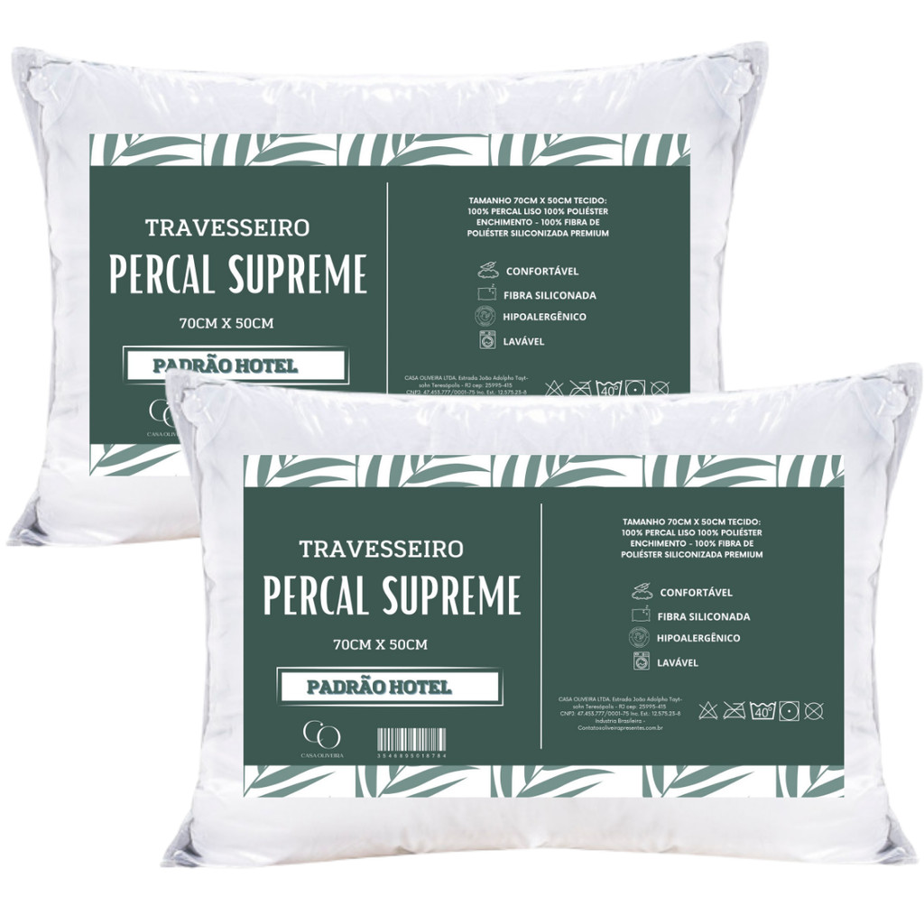Kit Com 02 Travesseiro Percal 180 Fios Algodão Extra Macio Fibra Siliconada