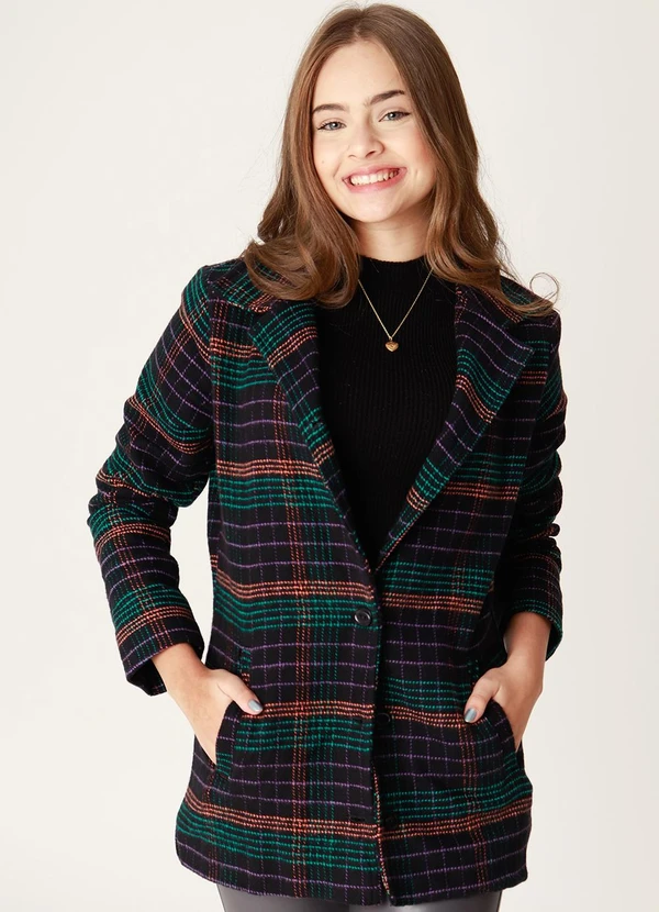 Sun Place - Casaco Lã Xadrez Preto