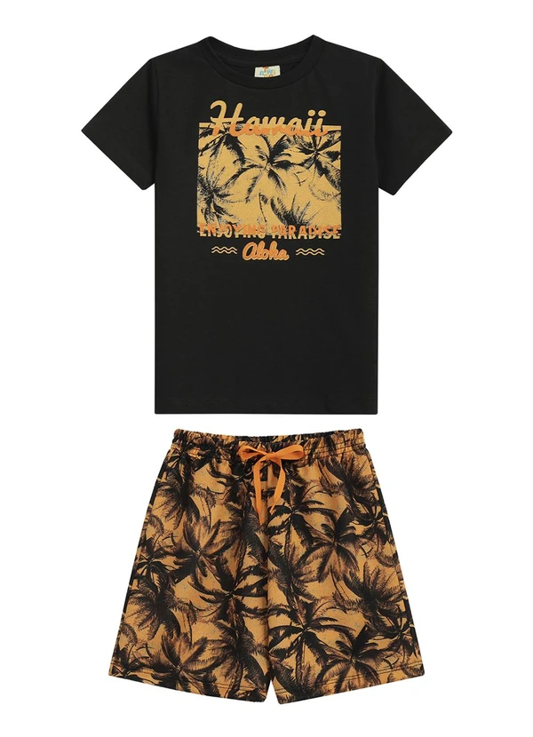 Twingo - Conjunto Camiseta e Short em Moletinho Preto