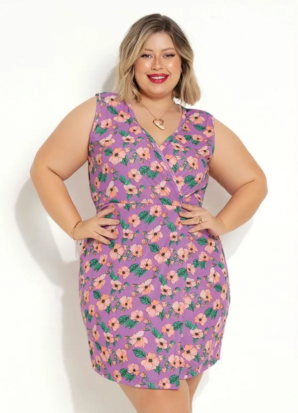 Marguerite - Vestido Floral Roxo Transpassado Plus Size