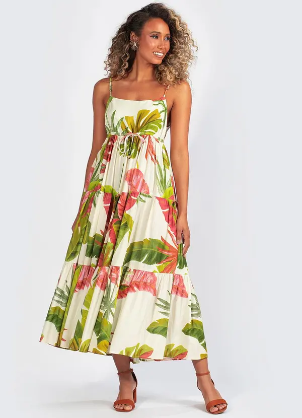 Farm - Vestido Midi de Viscose Tropical do Brasil Branco