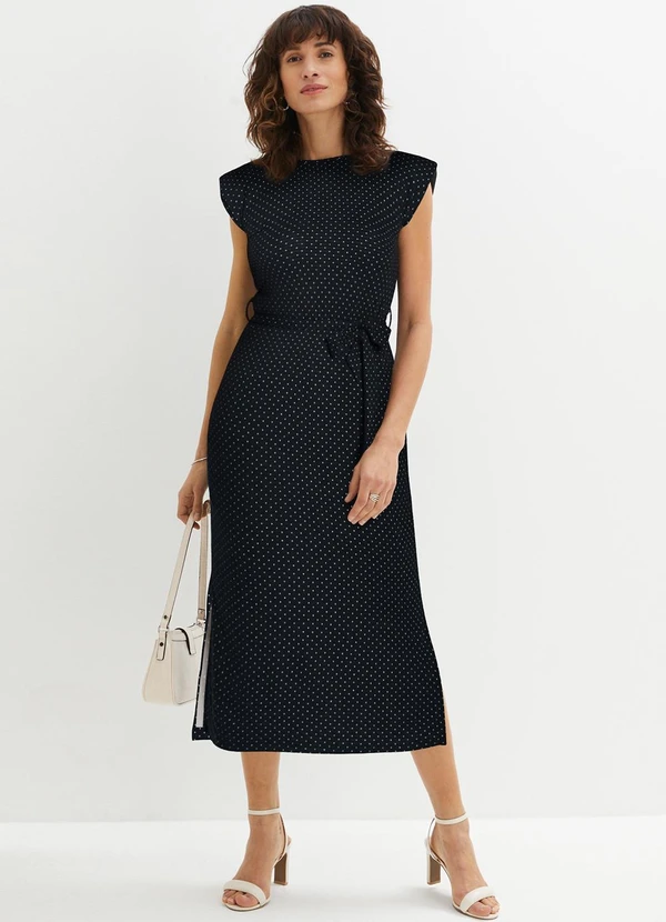 bonprix - Vestido Poá Preto em Malha Dupla Face