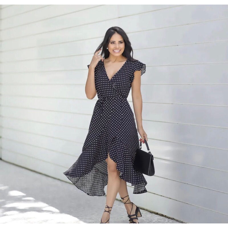 Moda Pop - Vestido Preto em Decote Transpassado com Alças