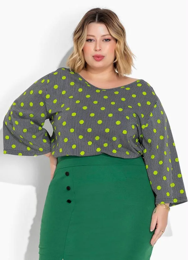 Marguerite - Blusa Poá e Listras com Mangas Amplas Plus Size