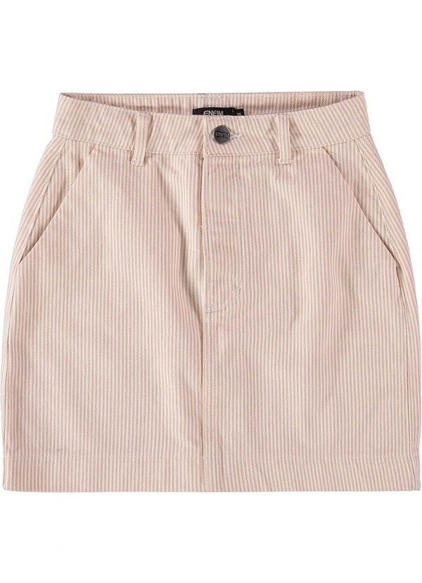 Enfim - Saia Rosa Pastel Curta Listrada em Sarja