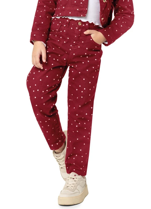 Carinhoso - Calça Mom Corações em Sarja Menina Bordô