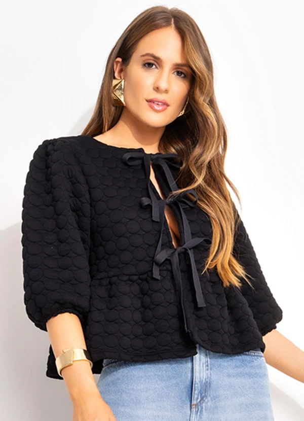 Quintess - Blusa Preto em Malha Matelassê
