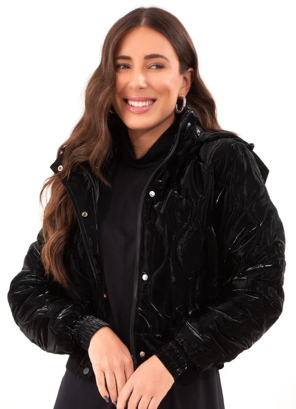Quintess - Jaqueta Puffer Preto em Matelassê