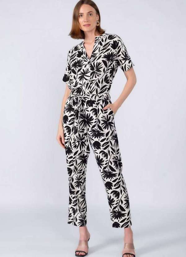 Lamis - Vestido Longo Estampado com Babado e Fenda Preto