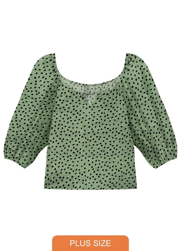Lunender Mais Mulher - Blusa Plus Size com Manga 3/4 Bufante Verde