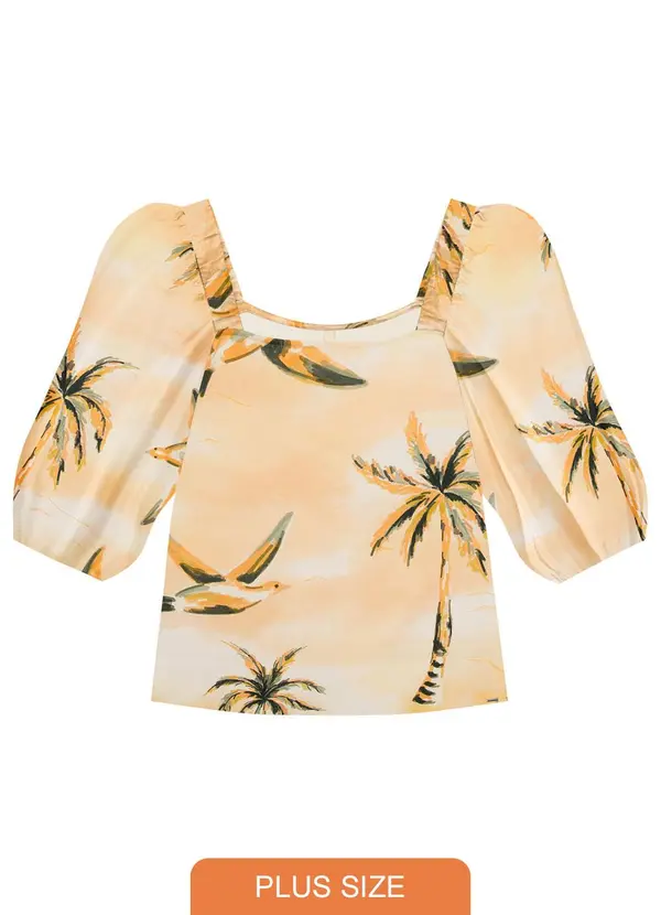 Lunender - Blusa Bata Estampada Manga 3/4 Bufante Laranja
