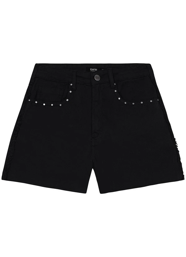 Enfim - Shorts Cintura Alta em Sarja Preto