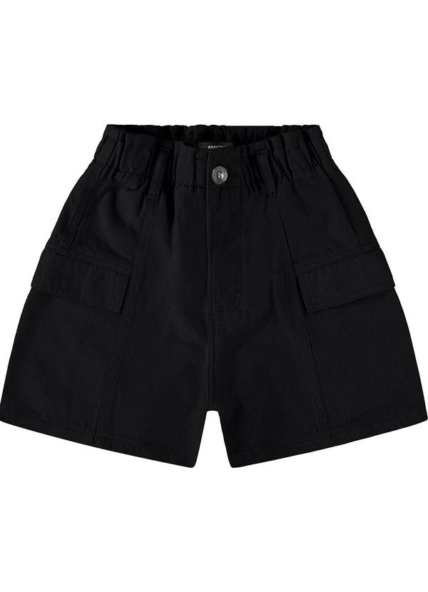 Enfim - Shorts Preto Clochard Cargo em Sarja