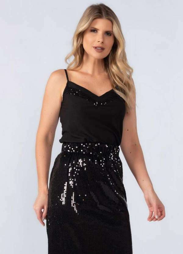 Lamis - Blusa Alca Detalhe em Paete Preto
