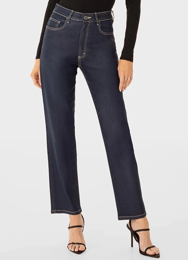 Enfim - Calça Reta Jeans Cintura Alta Azul