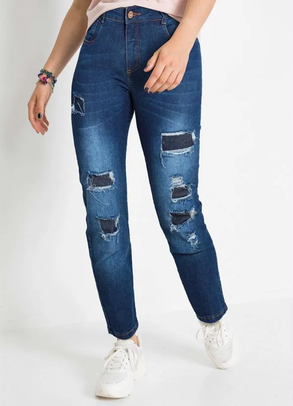 Queima Estoque - Calça Jeans Slouchy Destroyed Sawary Plus Size