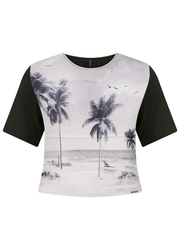 Lunender - Blusa Cropped com Frente Estampada Preto