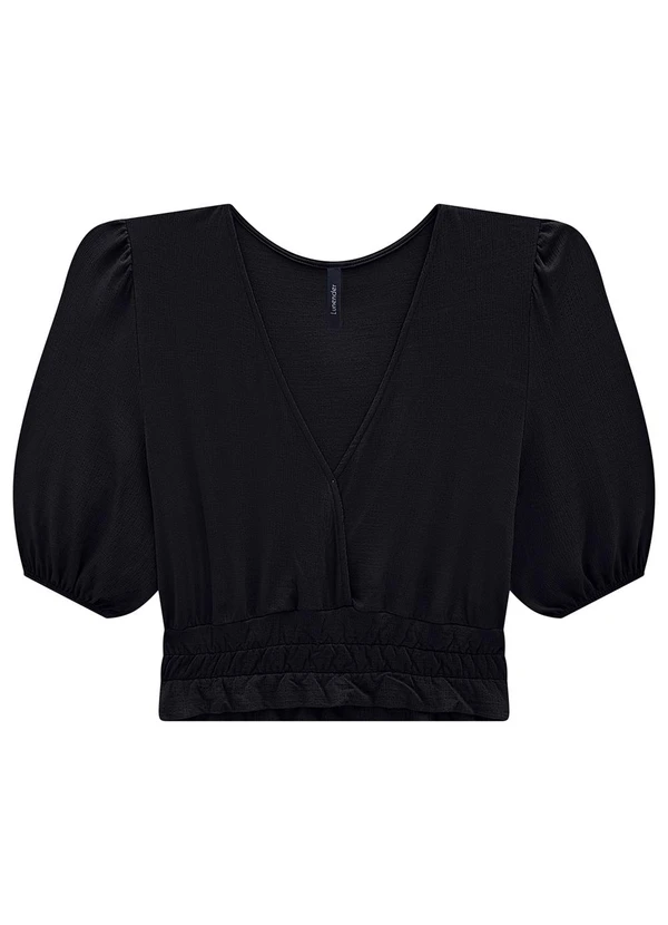 Lunender - Blusa Cropped Manga Bufante Elástico Barra Preto