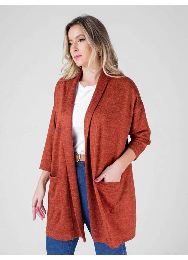 Susie Modas - Cardigan Manga 3/4 Feminino Marrom