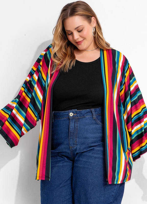 Marguerite - Kimono Listrado Colorido em Malha Fria