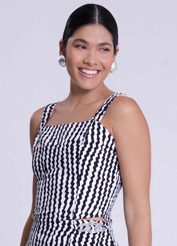 Lunender - Blusa Cropped em Viscose com Decote Reto Preto