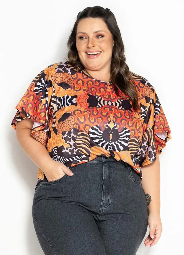 Marguerite - Blusa Animal Print com Mangas Amplas Plus Size