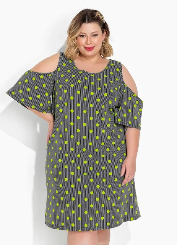 Marguerite - Vestido Poá e Listras de Mangas Amplas Plus Size