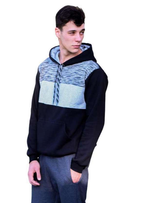 Cia da Malha - Blusa Moletom Masculina Adulta Peluciada Inverno Cinza com Preto