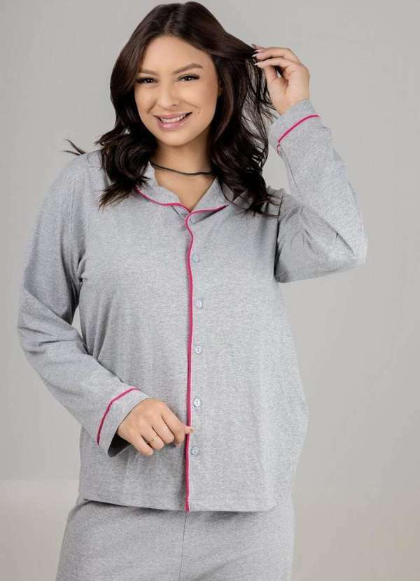 Cia da Malha - Pijama Feminino Adulto Moletom Manga Longa Meia Estação Mescla Medio