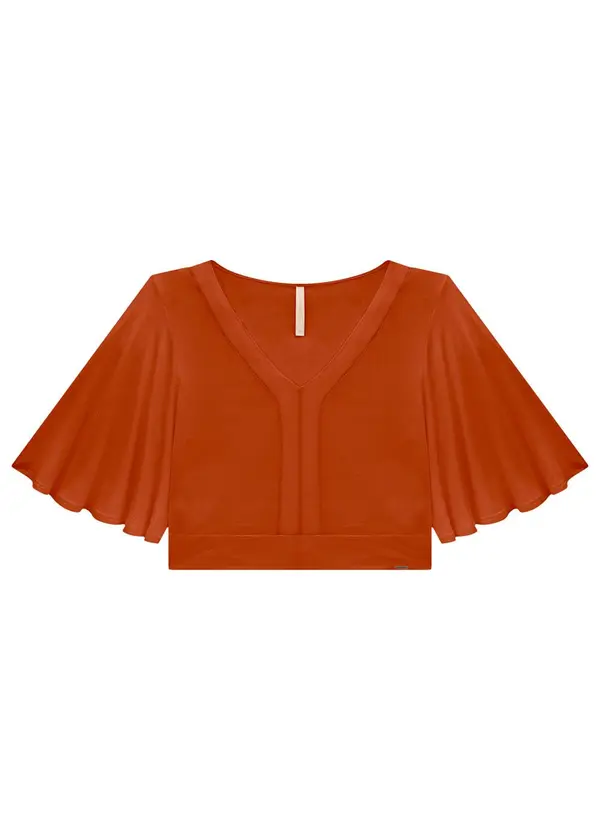 Lunender - Blusa Cropped em Linho com Decote Reto Marrom