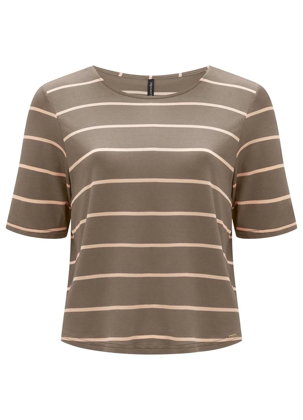 Lunender - Blusa Decote Redondo em Malha Listrada Marrom