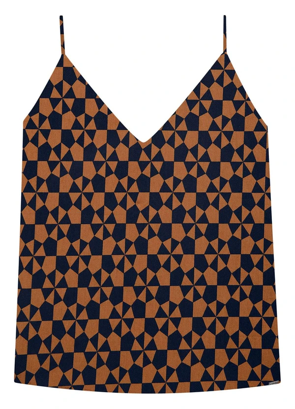 Lunender Mais Mulher - Blusa com Alças em Viscose Estampada Bege