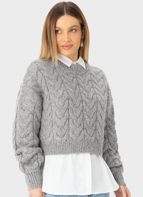 Enfim - Blusão Suéter em Tricô Cinza