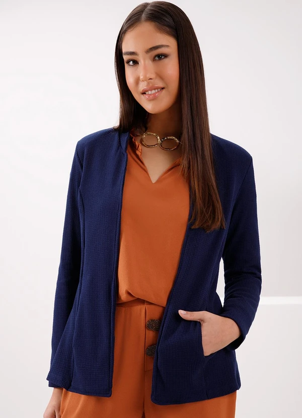 Lunender - Casaco Alongado com Ombreiras e Bolsos Azul