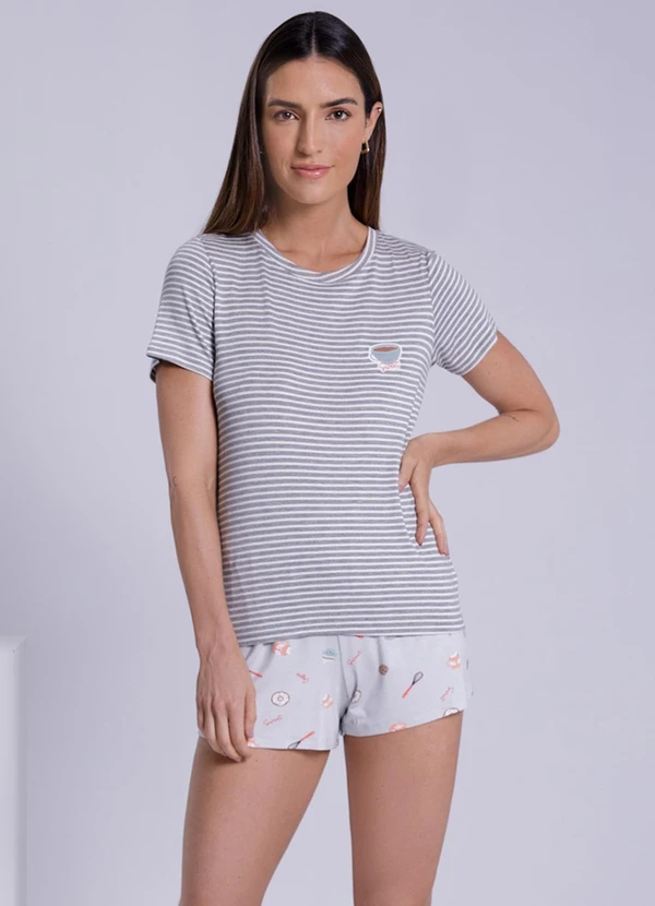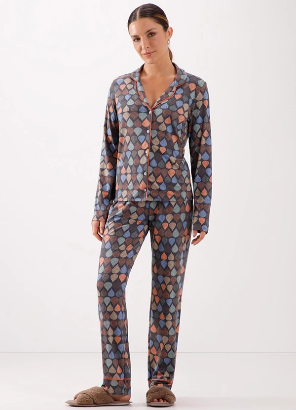 Lunender - Pijama Estampado com Calça e Camisa Cinza