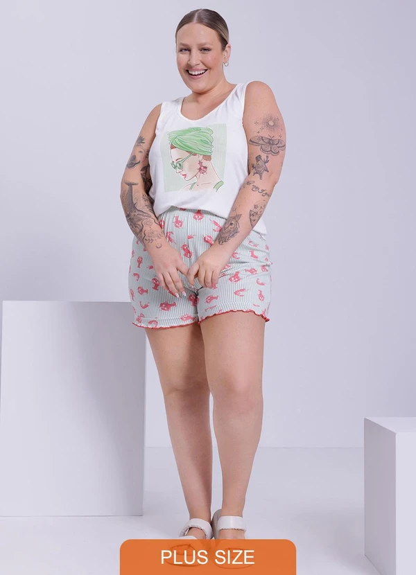 Lunender - Pijama Plus Size Regata e Shorts Estampado Verde