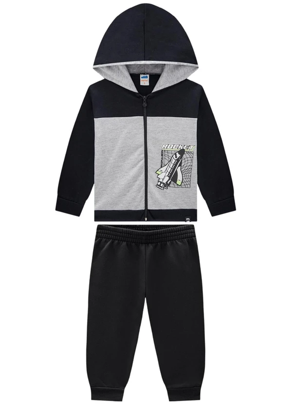 Marlan - Conjunto Jaqueta Rocket e Calça em Moletom Preto