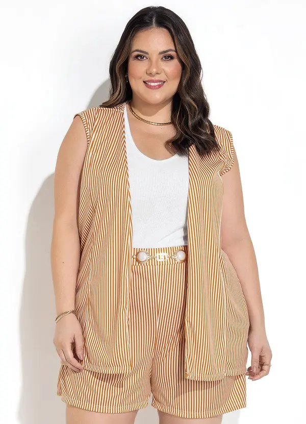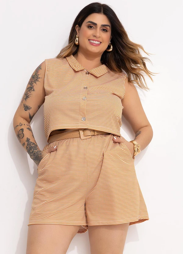 Marguerite - Conjunto Listrado Mostarda em Malha