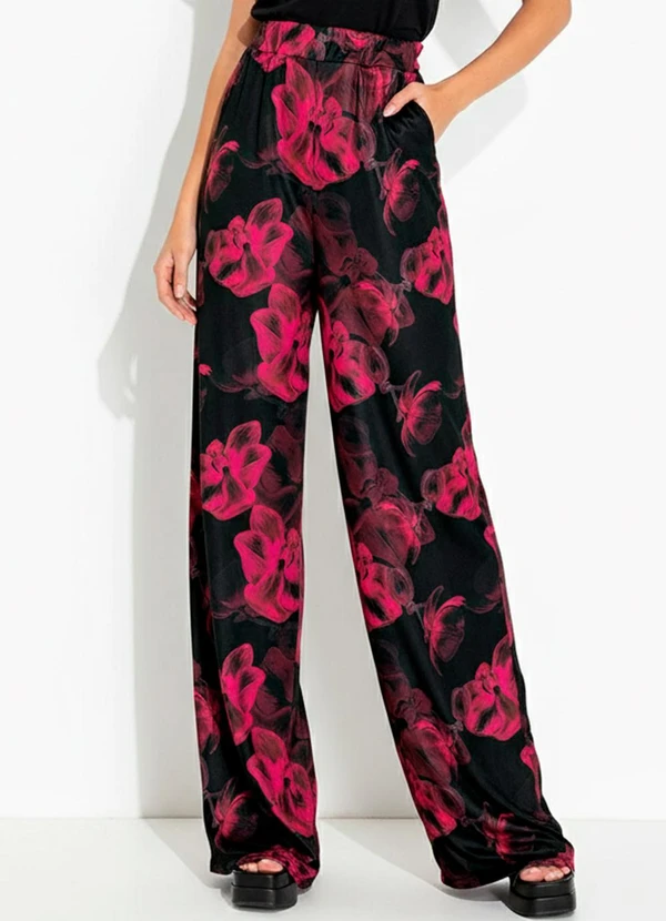Moda Pop - Calça Floral Preto com Bolsos Funcionais