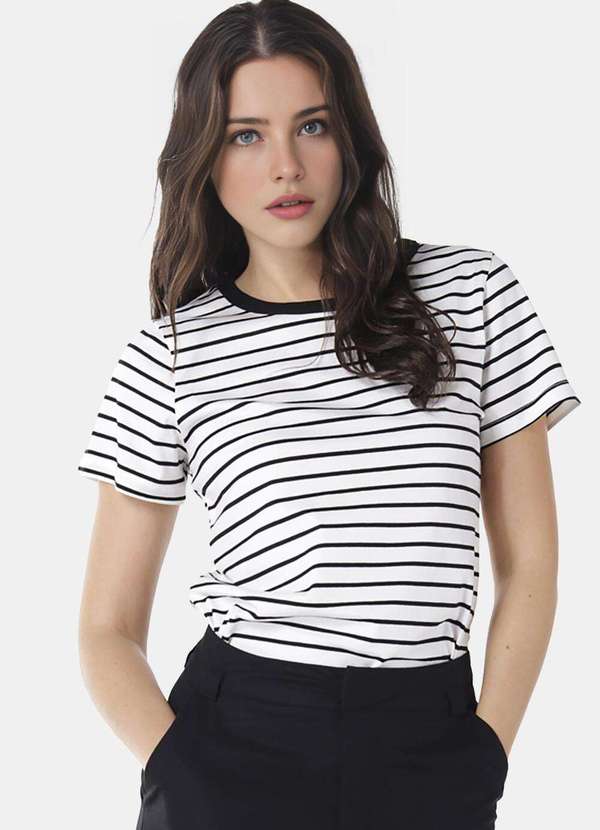 Sob - Blusa Feminina Listrada Preta Retrô em Malha de Algodão - Preto